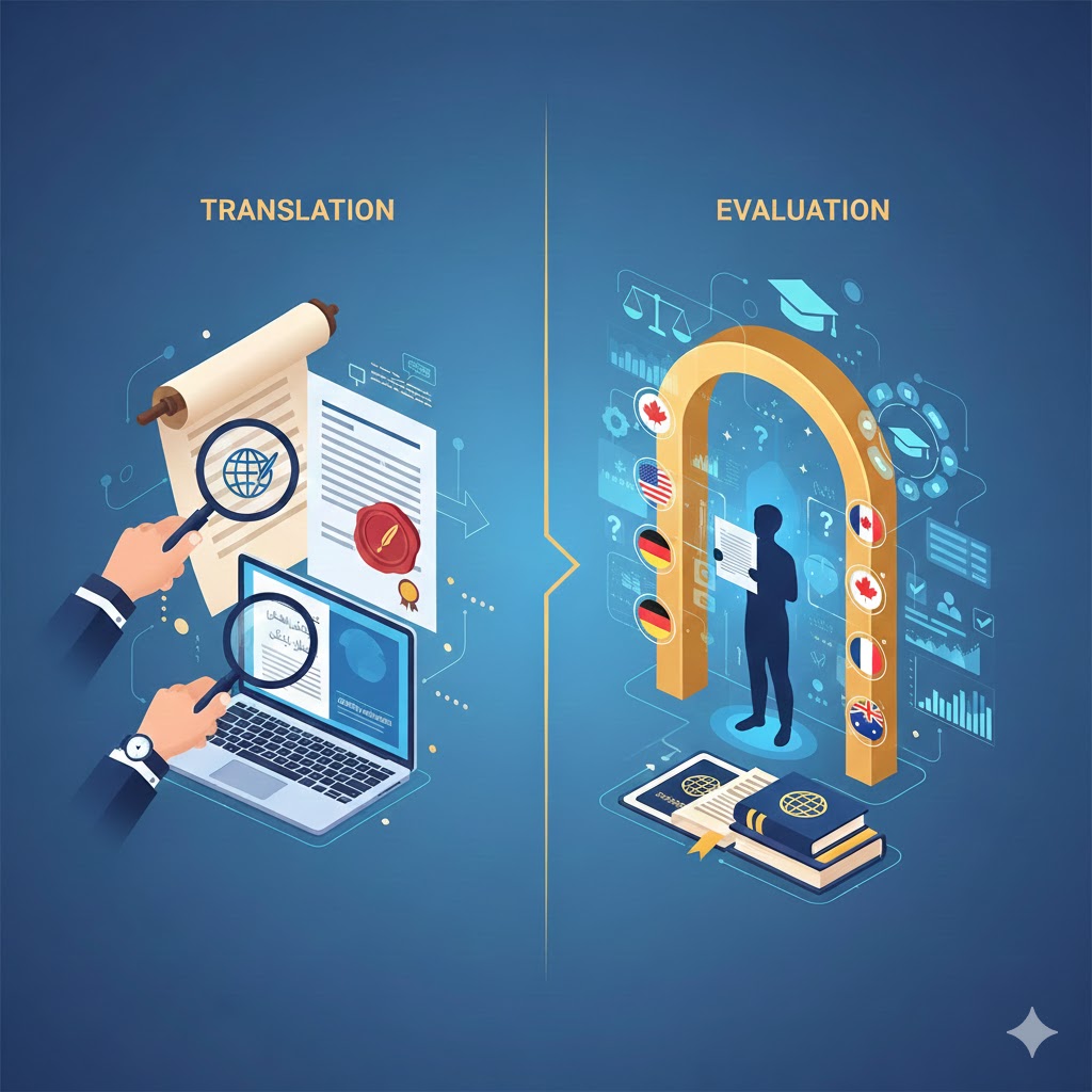 الخلاصة: مكتب الترجمة ينقل البيانات، بينما جهة المعادلة تقيّم القيمة العلمية لهذه البيانات.